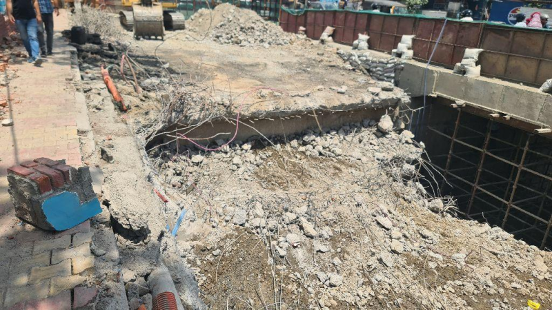 Dismantaling work in progress at km 13 ch 10.700 LHS for 6 MTR span RCC culvert