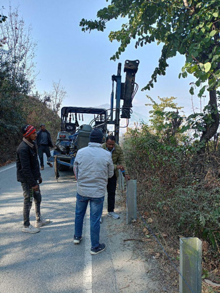 Crash barrier installation on 38/3 Haripur Ichhari Kwanu Menus motor road