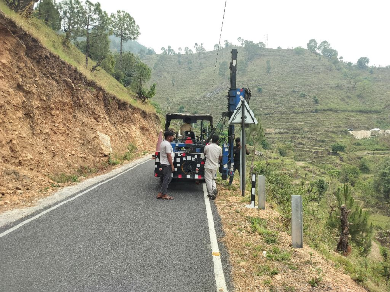 Installation of crash barrier in bageshwar girechina mr at chainage 8+230 under road safety work