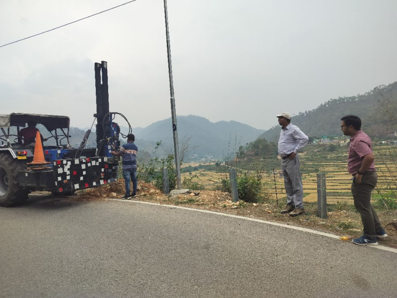 Inspection of Installation of crash barrier work in bageshwar girechina mr by EE sir and AE sir