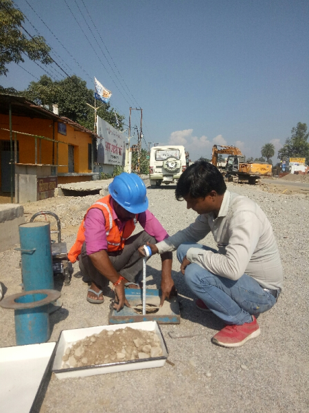 Checking thickness of WMM 2nd layer found 151mm ok