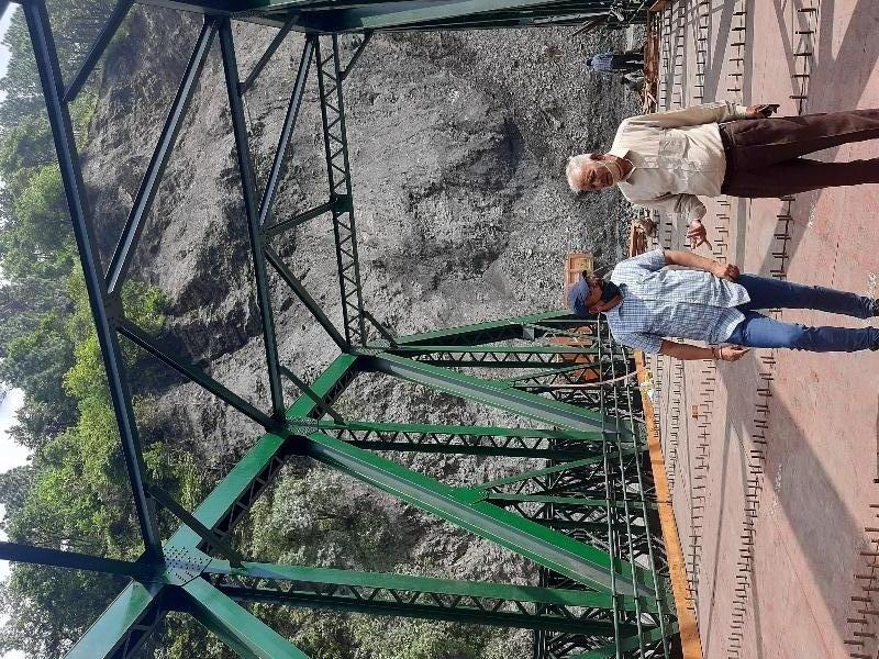 Inspection by SE sir Veerbhatti Bridge at km 2of NH87E shuttering works.
