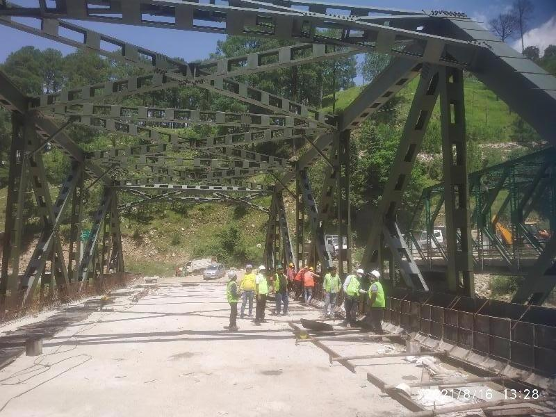Crash barrier casting in progress, superstructure erection and deck slab work completed
