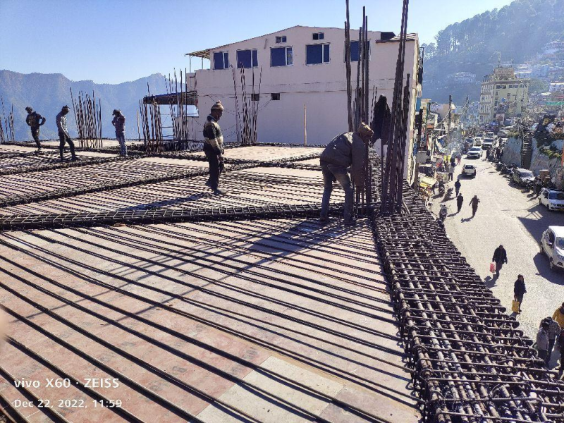 Pauri Bus station second floor beam steel reinforcement work