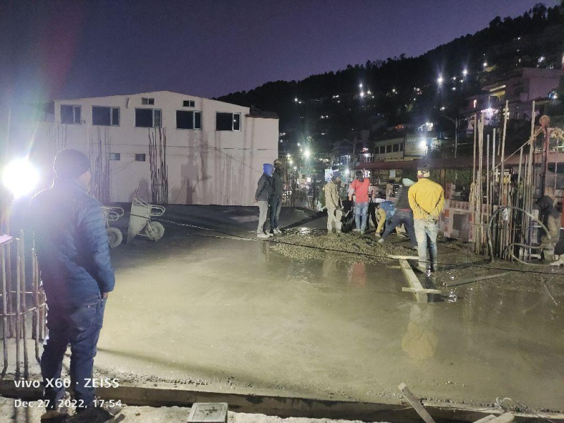Pauri Bus station second floor slab casting 2nd day finishing slab casting
