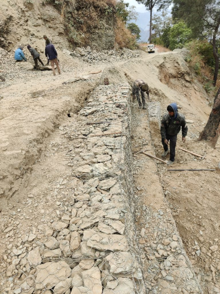 project:फरासू मंडोली चकवाली मोटर मार्ग के कि0मी0 8 व 9 पर भूधंसाव वाले भाग पर दीवार निर्माण कार्य। (2024-25) District: Pauri