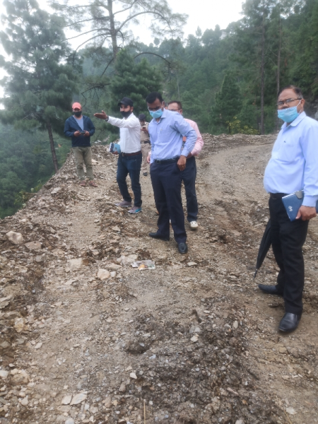 समखाल -मैंदोली परिंदा बौंठा मो. मा. का डेरियाखाल तक विस्तार में आज दिनांक 19-9-2021 को जिलाधिकारी पौड़ी द्वारा निरीक्षण किया गया. उक्त मार्ग पहाड़ कटान एवं स्कपर निर्माण का कार्य प्रगति पर है. जिलाधिकारी महोदय द्वारा शीघ्र कार्य पूर्ण कराये जाने हेतु निर्देशित किया गया.